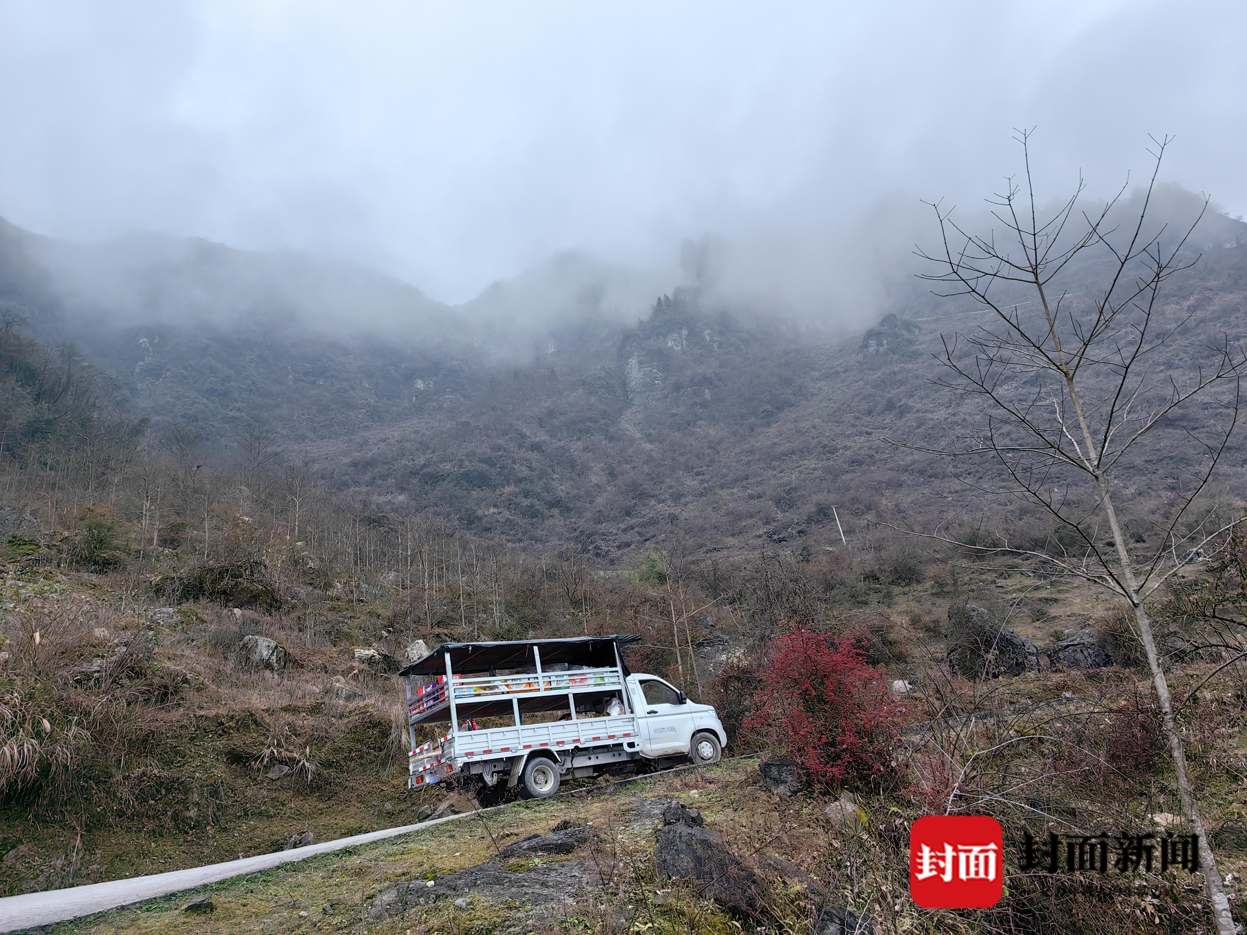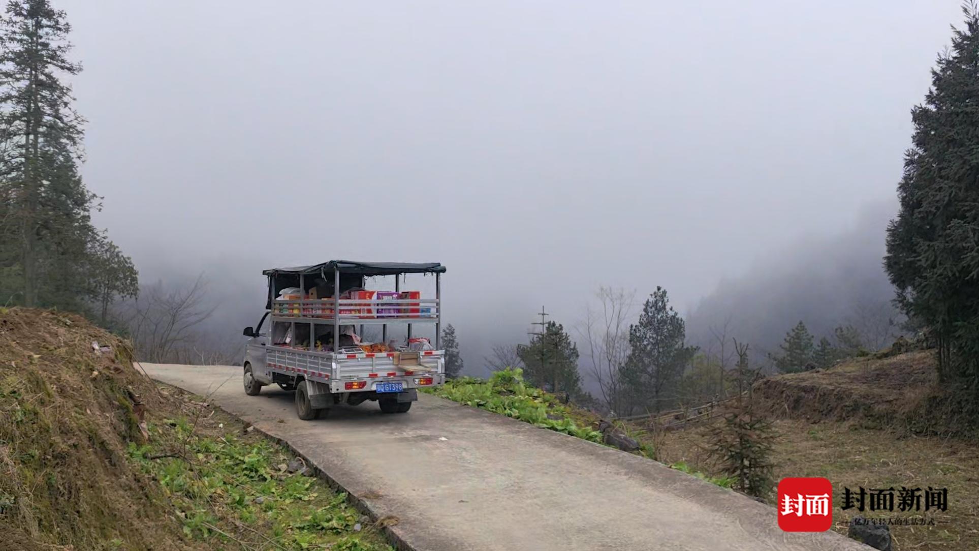 2月6日,封面新闻记者跟随周刚的小货车,在海拔落差1300多米的深山体验了货郎的一天。