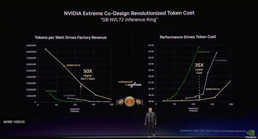 当黄仁勋在GTC上指出,“推理的拐点已经到来,需求还在不断增长”的时候,他描述的正是第一场token经济学。数据中心是token工厂,token即商品,算力即营收。随着推理场景对token的需求越来越大,数据中心的算力收入也随之增长。如果这是一个卖方市场,那么,算力还可以为自己争取溢价。